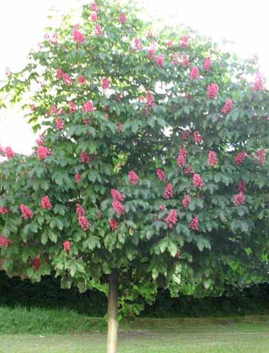 گل:در اوائل بهار،گلهای بسیار زیبای این درخت(از قرمز روشن تا قرمز تیره)به پهنای 2 تا 3 سانتیمتر به صورت پانیکول مثلثی شکل به ازای 12 تا 20 سانتیمتر در تمام سطح تاج شکوفا می شود.